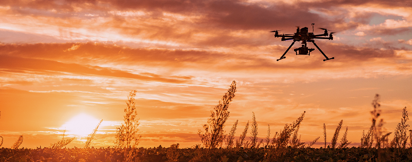 • Drones com sensores para imageamento, pulverização de defensivos e liberação de agentes biológicos